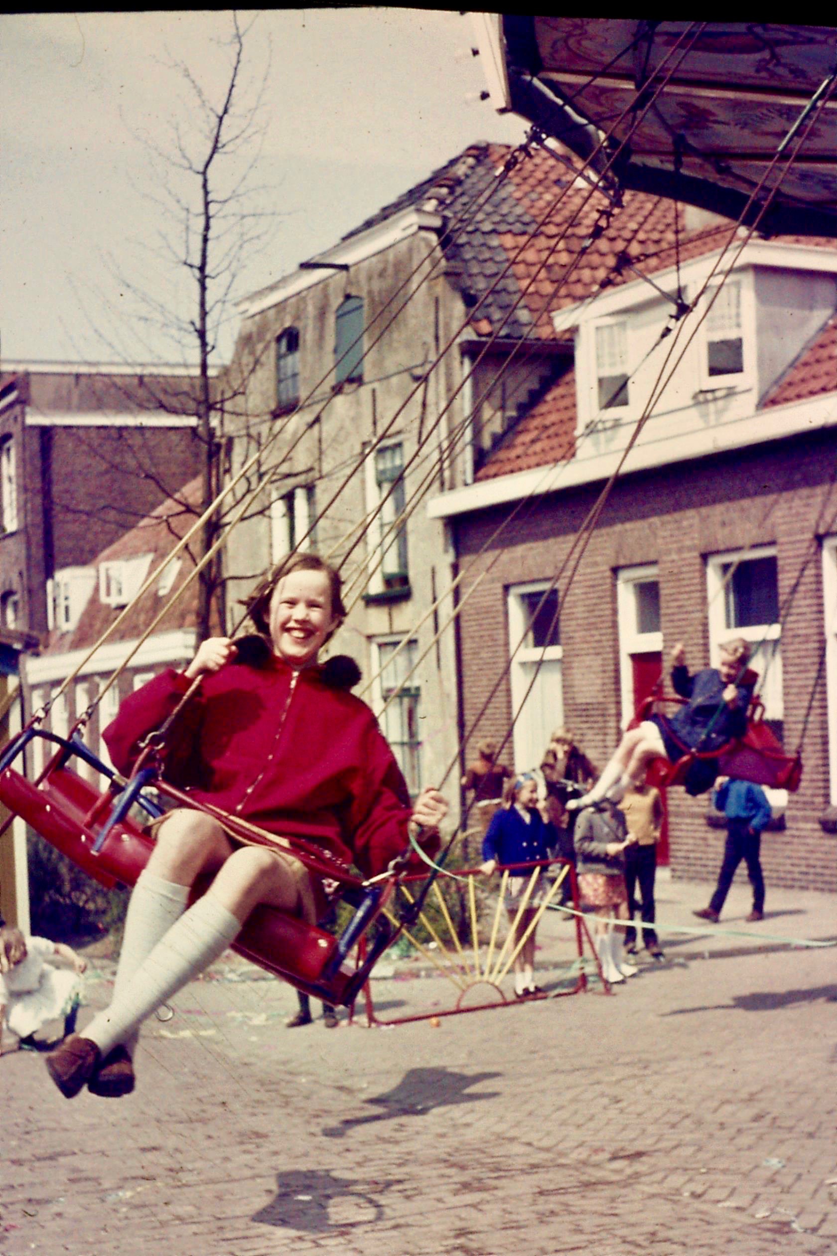 Ergens achter ons huis in het centrum van Weesp was een soort kermisje. Nou, dat is teveel gezegd. Er stonden wat toestellen ter verhoging van de feestvreugde. Volgens mij was het koninginnedag, mijn zus en ik waren die ochtend ook al verkleed geweest als bloemenmeisje of zo. Maar wat me die ruim halve eeuw-plus daarna nog is bijgebleven, is die andere ervaring.